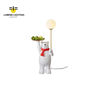 โคมไฟเรืองแสงรูปหมีขั้วโลกที่สร้างสรรค์โต๊ะน้ำชาในห้องนั่งเล่นถาดหมีน่ารักโคมไฟเรซิ่นตั้งพื้นงานฝีมือ